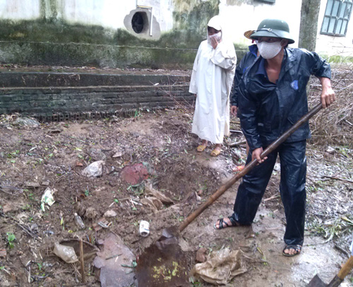Người dân đào tìm điểm chôn các thùng phuy chứa thuốc sâu ở Công ty Thanh Thái. Ảnh: Trịnh Duy Hưng – TTXVN